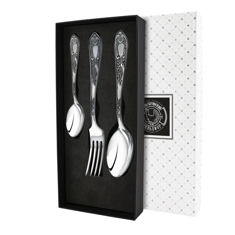 Набор столовый "Жасмин": вилка, ложка, чайная ложка посеребренный с чернением. Набор на 1 персону.