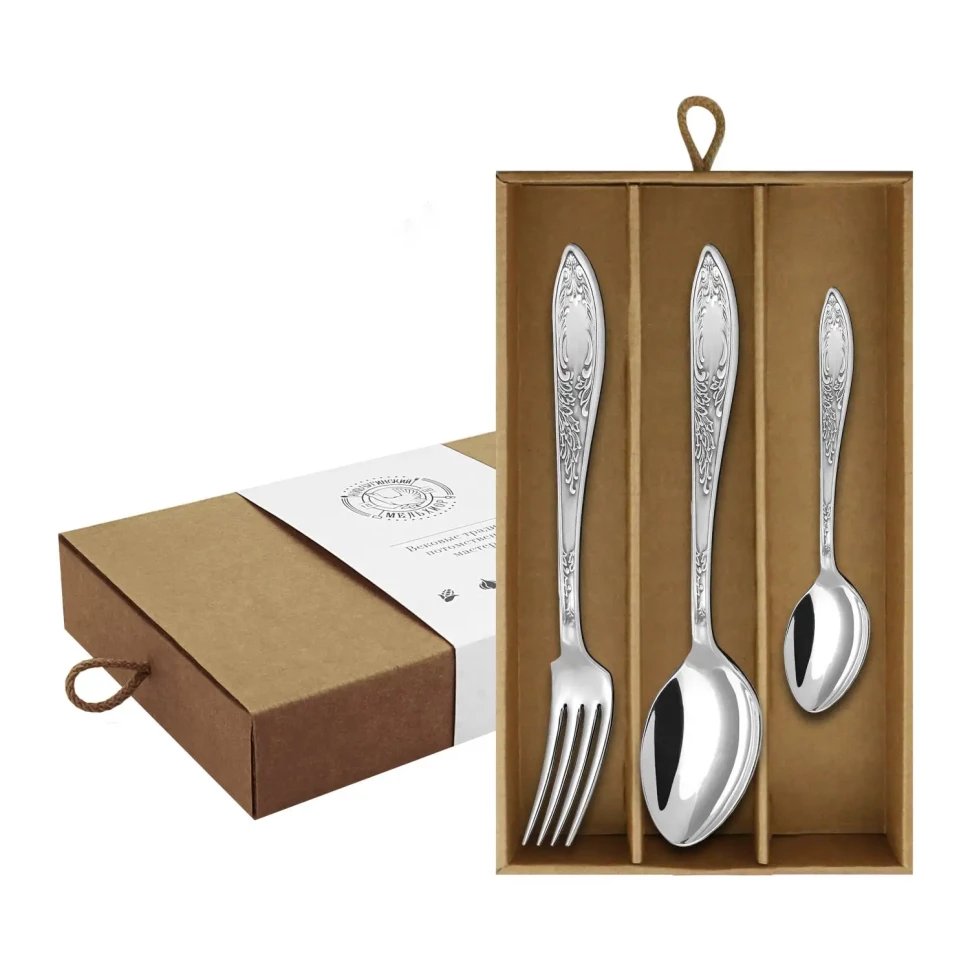 Набор столовый "Жасмин": вилка, ложка, чайная ложка посеребренный с чернением