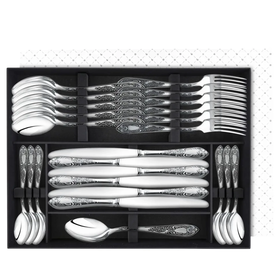 Набор столовый "Жасмин": вилка, ложка, нож, чайная ложка посеребренный с чернением. Набор на 6 персон.