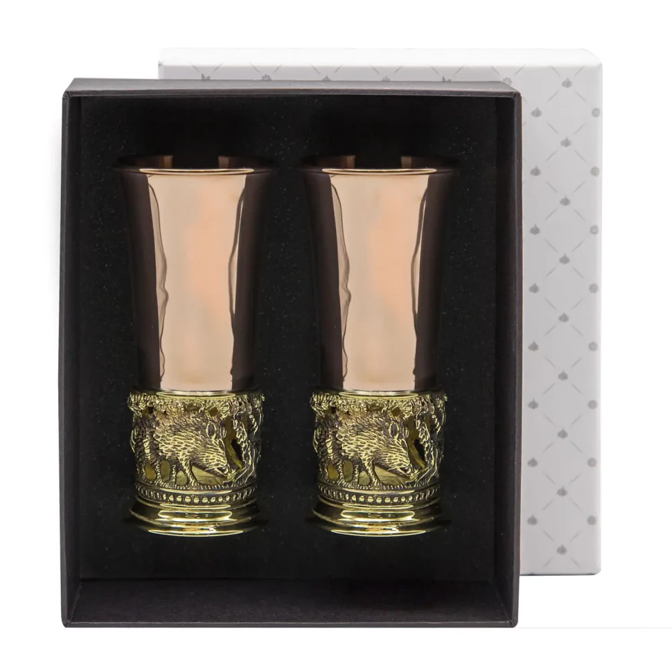Набор стопок "Кабаны" медный с чернью 2 предмета
