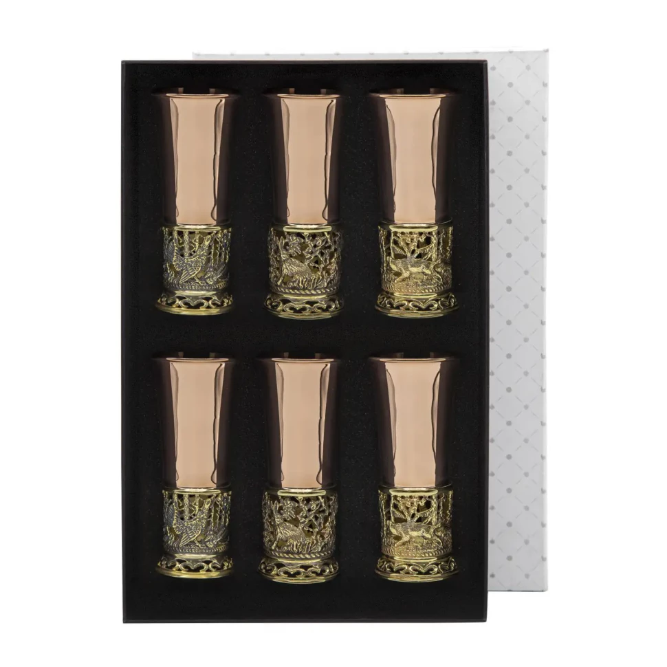 Набор стопок "Охотничий" медный с чернью 6 предметов