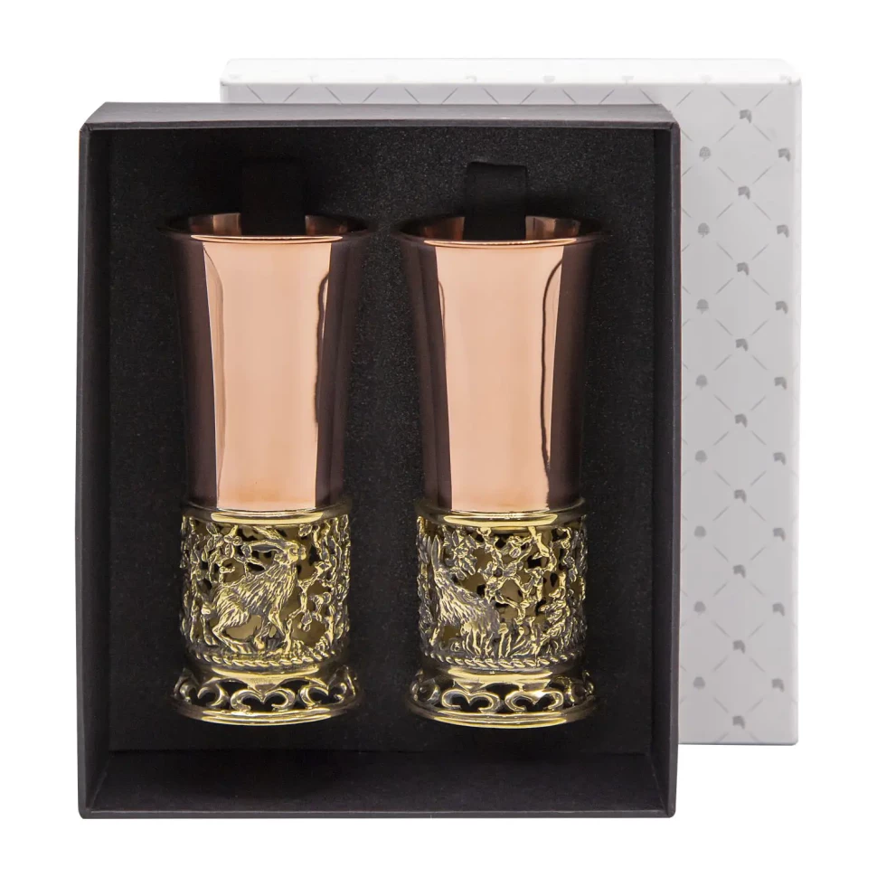 Набор стопок "Зайцы" медный с чернью 2 предмета