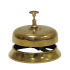 Настольный звонок-колокольчик из латуни. Такой предмет обычно располагается на ресепшене в отелях. Его можно использовать в качестве декоративного элемента и сигнализировать о начале какого-либо мероприятия, например, совещания в офисе.