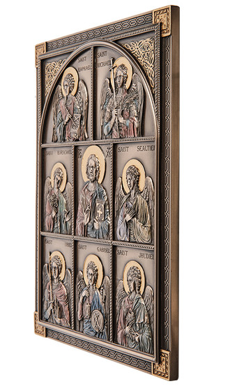 Красивое настенное панно, украшенное изображением Иисуса и семи архангелов. Благодаря высокому качеству исполнения, панно станет настоящим украшением Вашего интерьера.
