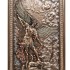 Декоративное настенное панно Архангела Михаила, побеждающего дьявола. Михаил изображен с огромными крыльями, одет в античный золотой наряд, в правой руке он держит меч. Дьявол изображен в виде лежащего на животе бородатого старика.