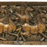 Деревянное панно из тика в этническом стиле с игривыми жеребятами.