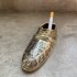 Изделие из латуни с традиционной индийской резьбой. Тёмная эмаль создаёт глубокий контраст с латунным узором. Украсит гостиную, кабинет или каминную полку.