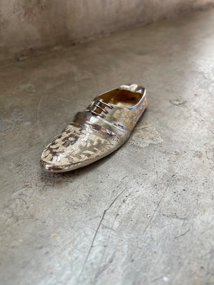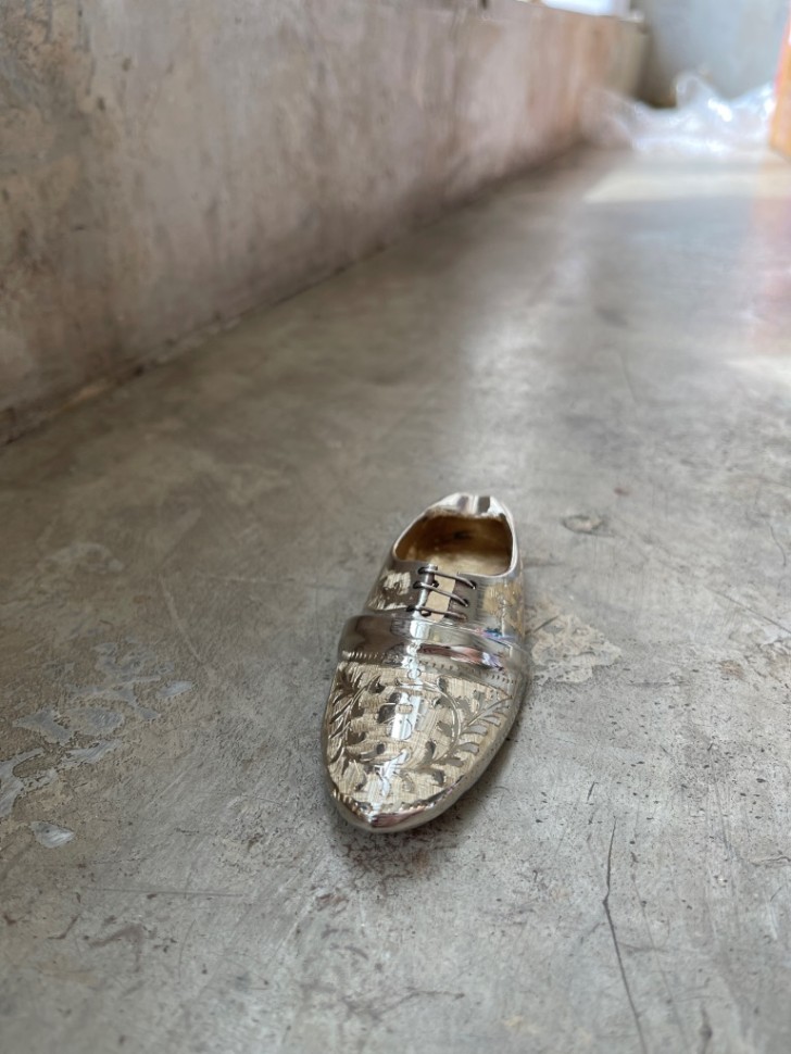 Изделие из латуни с традиционной индийской резьбой. Покрытие никелем придаёт изделию благородный серебристый блеск. Коллекция Firki — характерный спиральный орнамент. Украсит гостиную, кабинет или каминную полку.