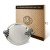 Поднос декоративный круглый с накладками "Виноград" (большая и малая) медный посереб.