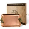 Поднос прямоугольный с латунными накладками "Виноград" медный кованый