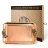Поднос прямоугольный с медными накладками "Виноград" медный кованый