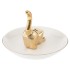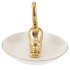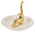 Подставка для украшений "Кошка" — это изысканный аксессуар, который сочетает в себе практичность и художественное оформление. Выполненная из высококачественного фарфора, она представляет собой белоснежную тарелочку, которая лаконично впишется в любой интерьер. В центре подставки размещена эффектная фигурка кошки, выполненная в благородном золотом цвете. Эта симпатичная кошка не только украшает подставку, но и выполняет функциональную роль: её изящный хвостик прекрасно подходит для хранения колец и других мелких украшений, не позволяя им теряться или запутываться. Элегантный дизайн и аккуратные линии делают этот предмет искусства идеальным решением для организации ваших драгоценностей, а также прекрасным подарком для любителей кошек и стиля. Такой аксессуар поможет поддержать порядок на туалетном столике или в ванной комнате, добавляя уют и шарм. Эта подставка станет не только функциональной, но и стильной деталью вашего дома.