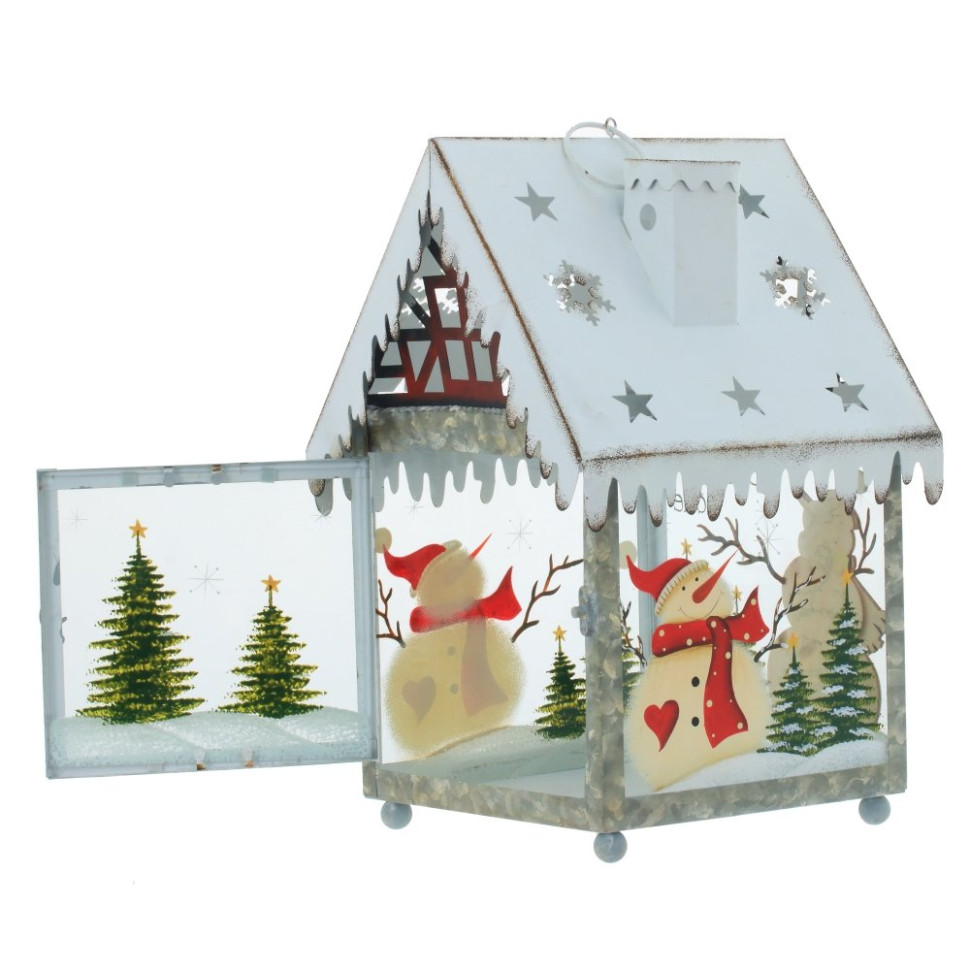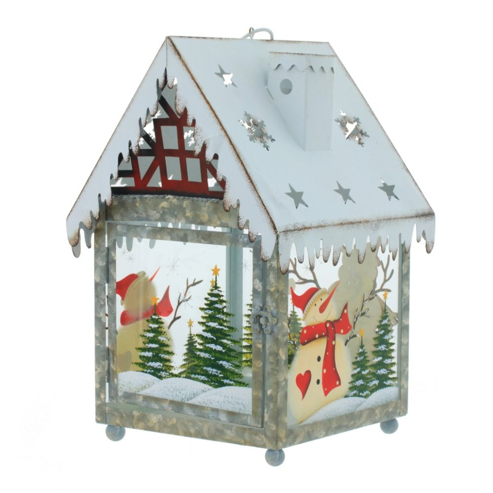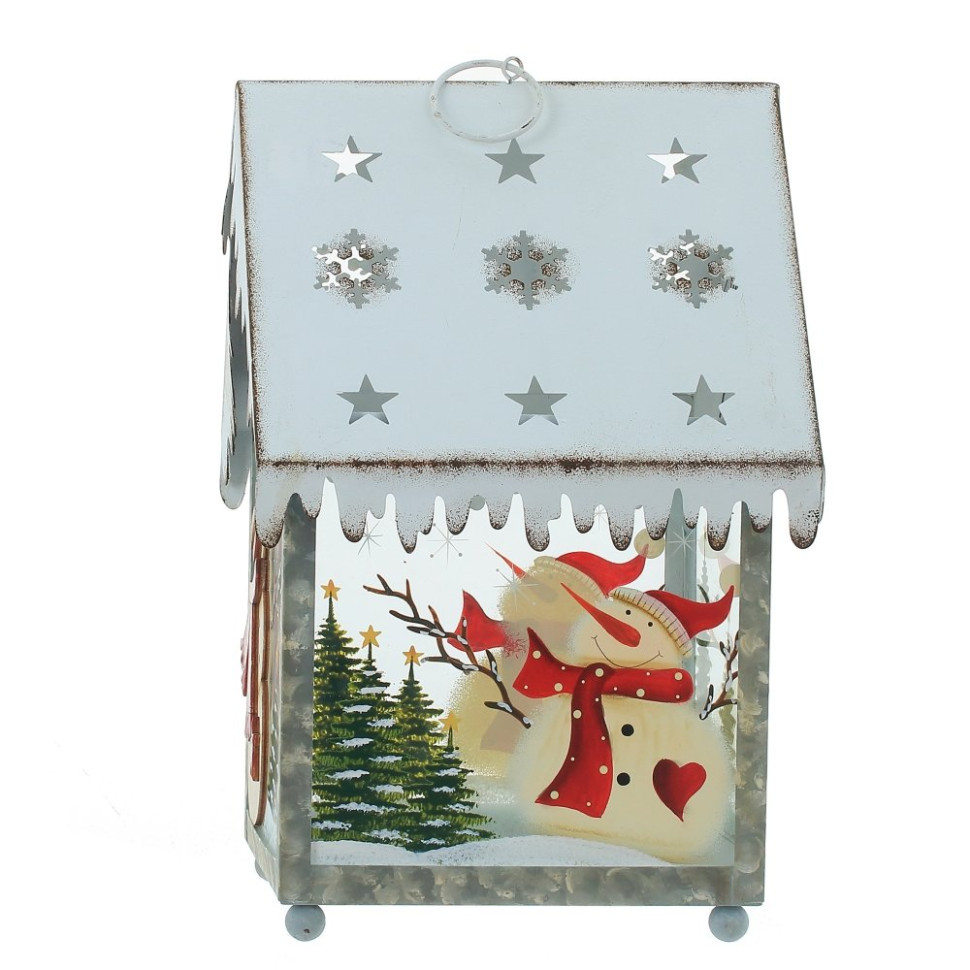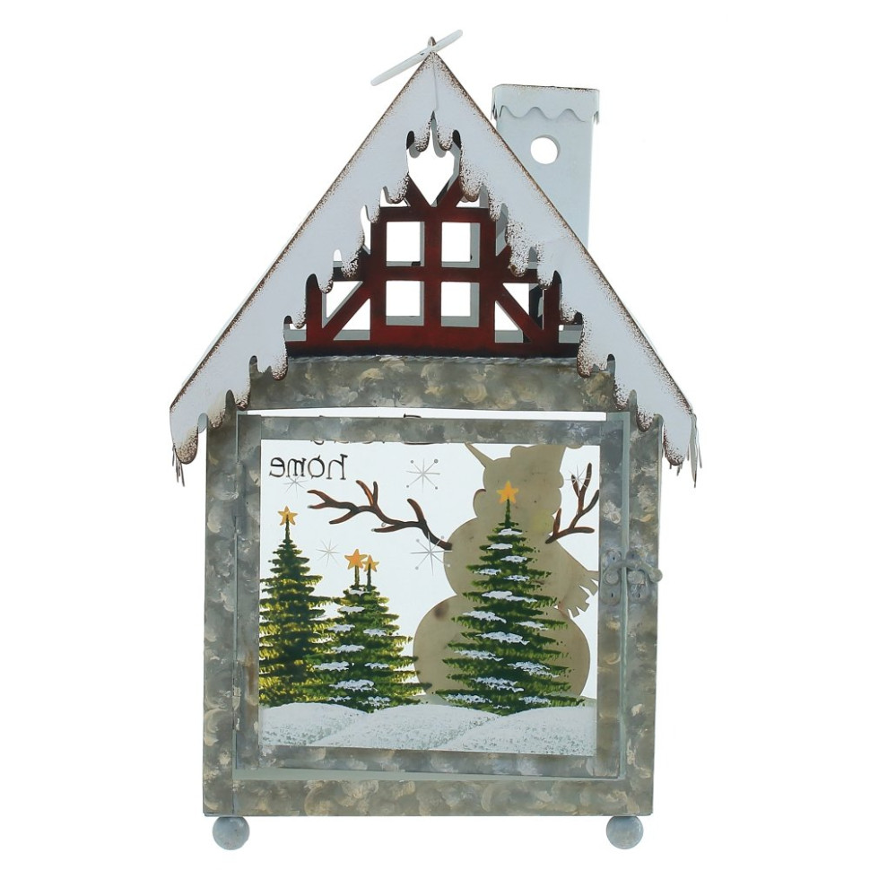 Подсвечник "Фонарик" имеет форму прямой призмы. Свеча вставляется через боковую дверцу. На стекле нанесена деколь с новогодним сюжетом. Крышка фонарика ажурная с подвесом.