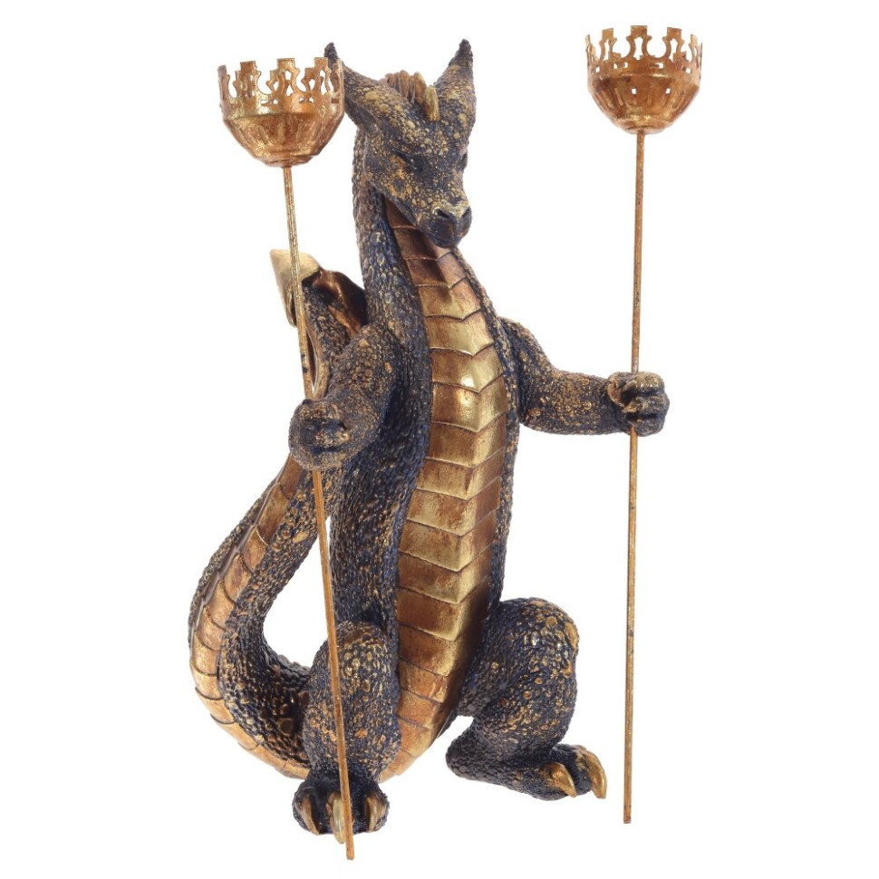 Роскошная фигурка - подсвечник "Дракон" – истинное произведение искусства, которое способно преобразить любой интерьер. Фигурка устойчива, выполнена из полистоуна. Подсвечник для свечей, диаметром 6 см.