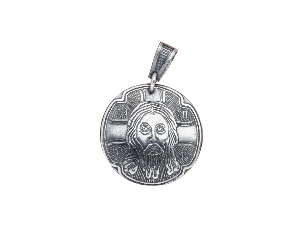 Круглая подвеска-иконка с образом Спаса Нерукотворного. Этому образу принято молиться в самых сложных жизненных ситуациях, когда отчаяние, уныние или гнев не дают жить по-христиански.