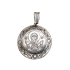 Круглая подвеска выполнена методом тиснения, украшена изображением одной из наиболее почитаемых икон Божьей Матери - "Знамение". Этой иконе молятся о прекращении бед, о защите от нападения врагов, от пожаров.