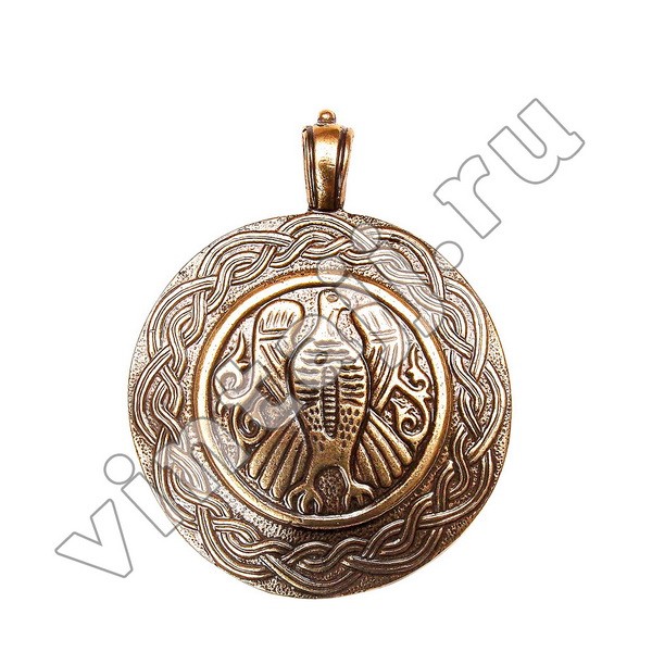 Круглая подвеска ручной работы, украшенная изображением сокола. Подвеска в славянском стиле станет отличным подарком ценителю необычных украшений.