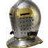 Сувенирный рыцарский шлем с шейной защитой. Шлем можно использовать в качестве театрального реквизита или для украшения интерьера рабочего кабинета.