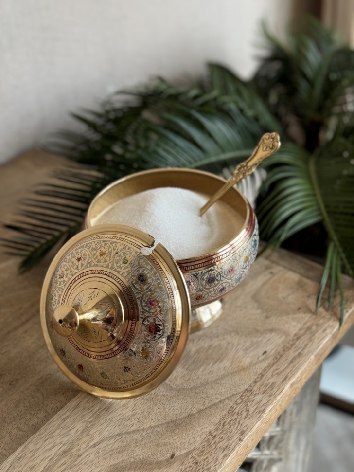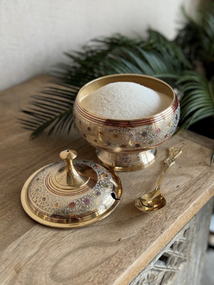 Сахарница латунь резная BIDRI белая эмаль h-15 см