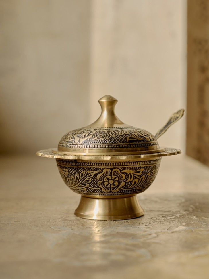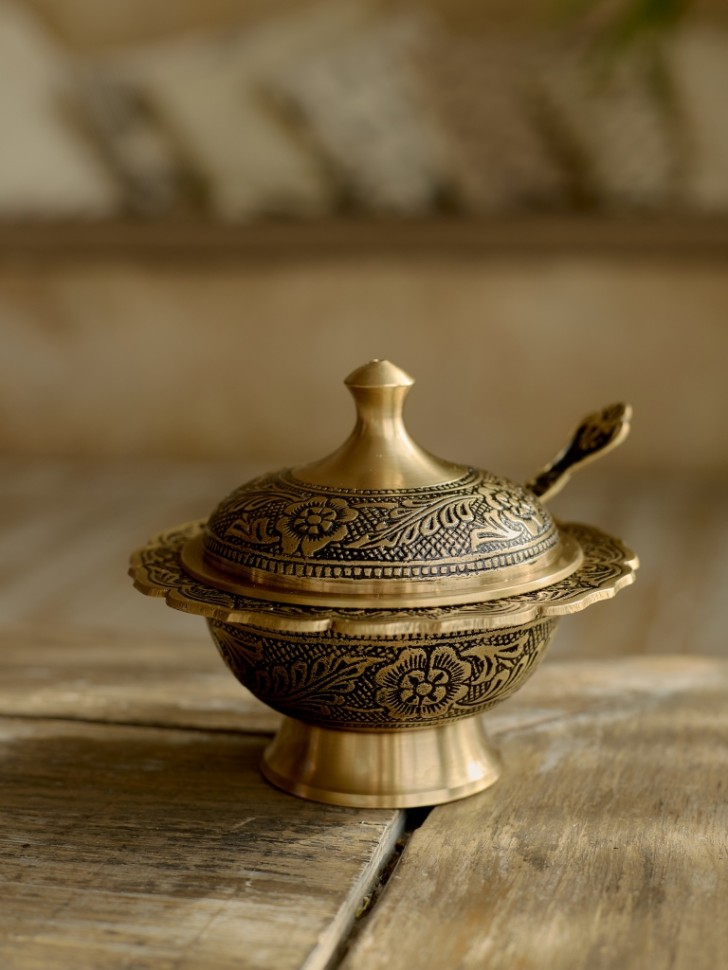 Изделие из латуни с традиционной индийской резьбой. Украсит гостиную, кабинет или каминную полку.