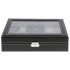 Шкатулка черного цвета с декоративной белой строчкой - стильное и практичное решение для хранения 8 часов. Мягкие подушки подходят для большинства ремешков и браслетов. Крышка - прозрачная, защитит ваши аксессуары от пыли и обеспечит прекрасный обзор. Изделие станет приятным и полезным подарком.