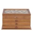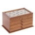 Деревянная шкатулка для украшений состоит из четырех секций. Крышка стеклянная, с резным декором. Отделка бархатистой тканью предохраняет ювелирные изделия от царапин. Эффектный дизайн, качественная фурнитура. Замечательная вещь, которая всегда станет приятным подарком для любой женщины, в любом возрасте.