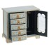 Стильная и удобная шкатулка придется по вкусу девушкам благодаря универсальному дизайну и практичной конструкции. Изделие выполнено в виде маленького комода с выдвижными ящиками для хранения. Завершает композицию металлическая фурнитура цвета золота.