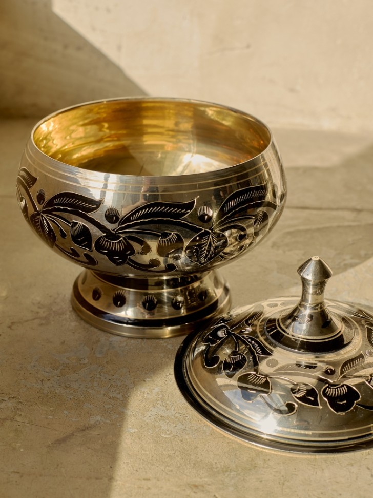 Латунная шкатулка для хранения украшений и мелочей. Подойдёт для интерьера в восточном, этническом или бохо стиле.