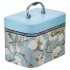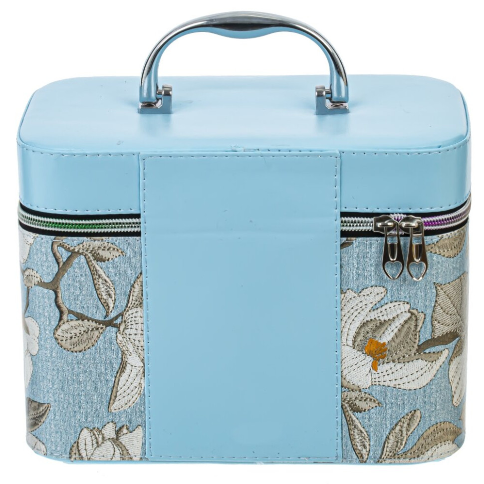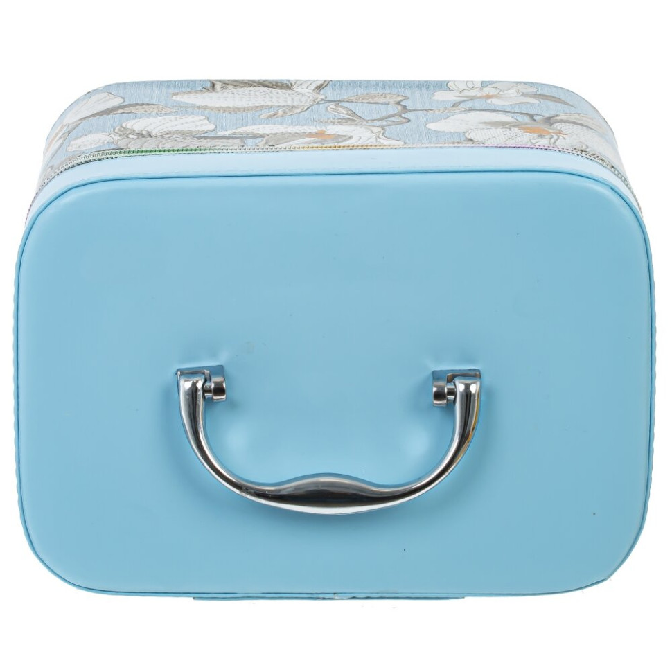 Шкатулка в виде чемоданчика выполнена из прочного материала и имеет элегантный дизайн, что делает ее не только функциональной, но и привлекательной. Крышка шкатулки закрывается на молнию, что обеспечивает надежную и безопасную защиту содержимого. Также на крышке установлена ручка для удобного переноса и транспортировки изделия . На внутренней части крышки встроено зеркальце, что делает ее еще более функциональной.