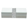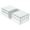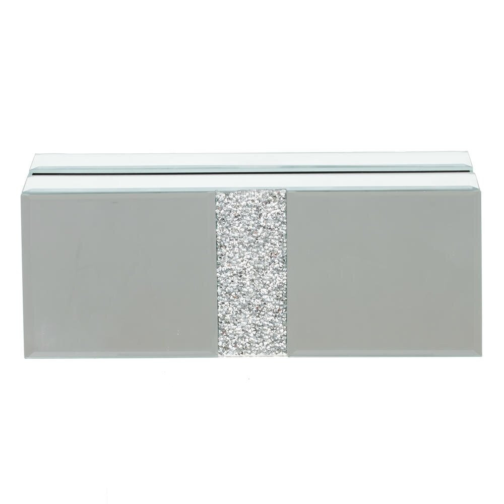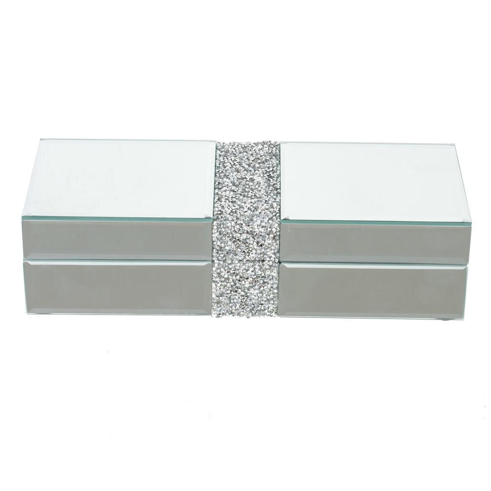 Элегантная прямоугольная шкатулка с зеркальной поверхностью станет изысканным акцентом любого интерьера. Корпус выполнен из прочного дерева и облицован стеклом, благодаря чему изделие эффектно переливается и визуально расширяет пространство. Центральные вставки с декоративным блеском придают шкатулке праздничный, «ювелирный» характер. Внутренняя часть обтянута мягким бархатом глубокого чёрного цвета, который бережно защищает украшения и аксессуары от царапин. Идеально подходит для хранения бижутерии, часов, мелких сувениров или как подарочная упаковка для особого случая.