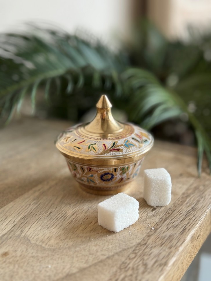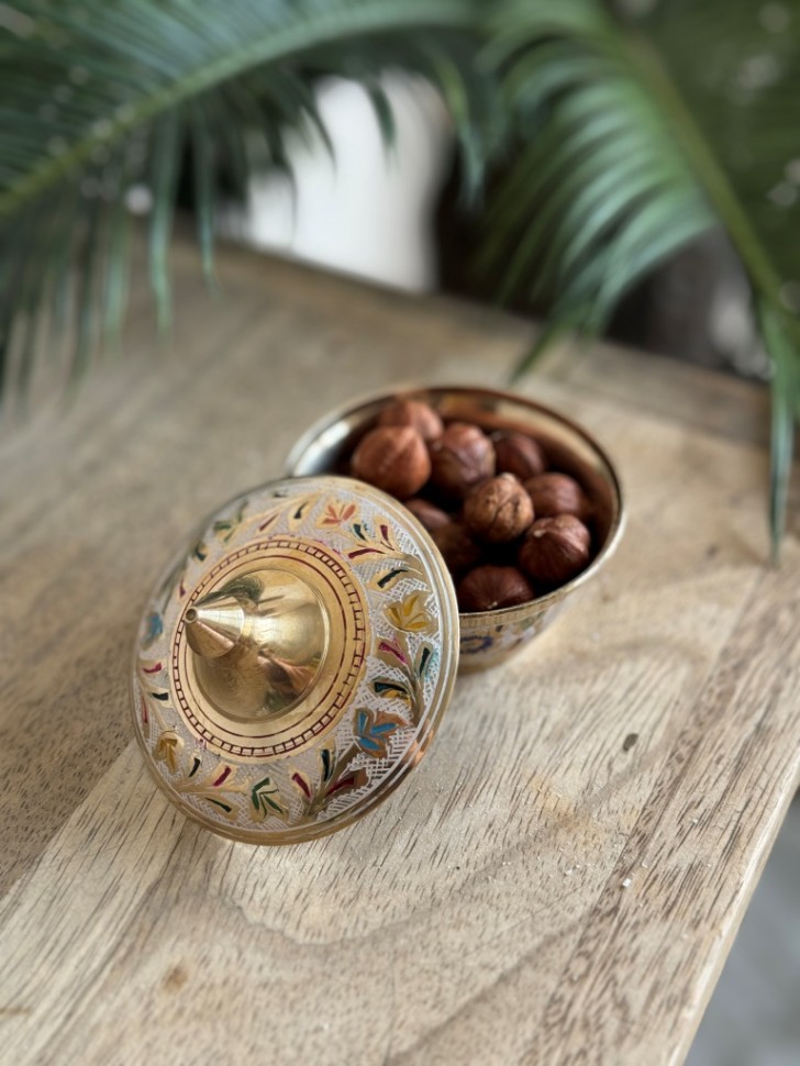 Латунная шкатулка для хранения украшений и мелочей. Белая эмаль придаёт изделию нежный, утончённый вид. Подойдёт для интерьера в восточном, этническом или бохо стиле.