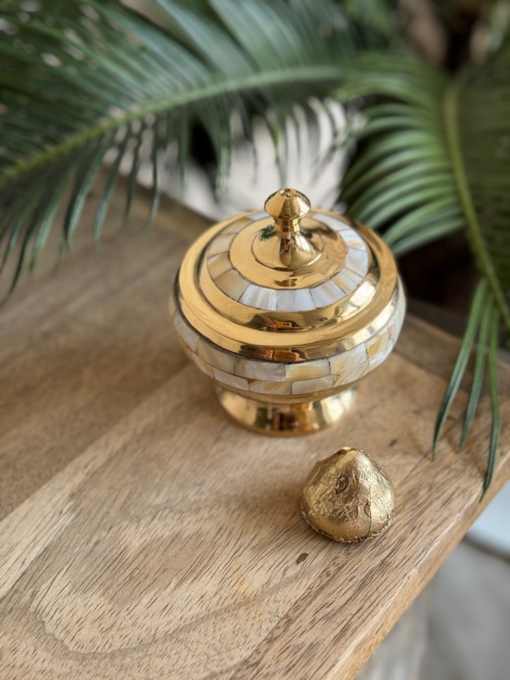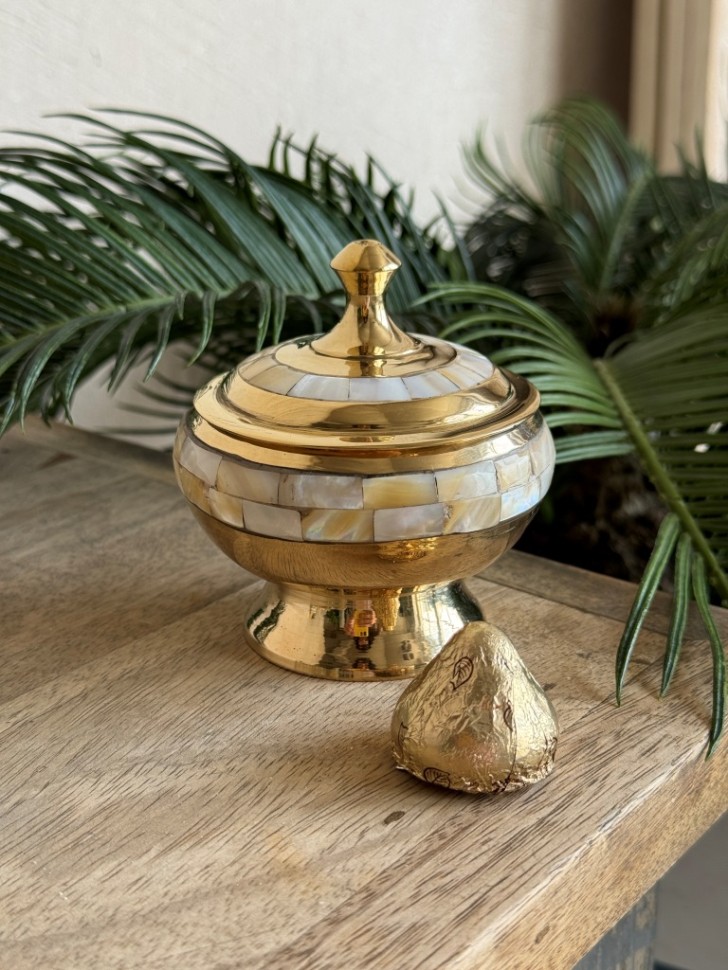 Шкатулка из латуни с традиционным восточным узором. Полированная поверхность подчёркивает тёплый золотистый оттенок латуни. Станет акцентом в интерьере или оригинальным подарком.