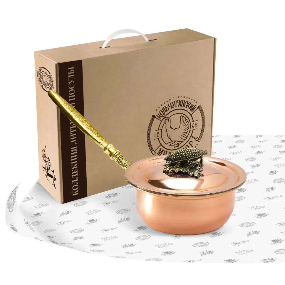 Сотейник медный с луж. с крышкой "Кукуруза" с резной ручкой