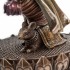 Изумительная декоративная статуэтка бога мудрости Ганеши выполнена в бронзовом цвете. Ганеша изображен в красивом наряде, стоящим на лотосе, у его ног большая крыса в ошейнике.