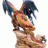Декоративная настольная фигурка выполнена в виде дракона на скале и рыцаря. Интерьерная статуэтка ручной работы станет изюминкой Вашего интерьера и приятным подарком близкому человеку.