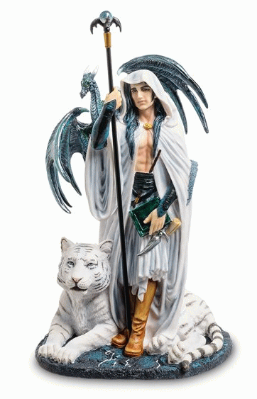 Декоративная настольная фигурка выполнена в виде колдуна с белым тигром. Интерьерная статуэтка ручной работы станет изюминкой Вашего интерьера и приятным подарком близкому человеку.