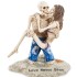 Необычная интерьерная статуэтка в виде двух целующихся скелетов на пляже. Мужчина скелет одет в голубые пляжные шорты в цветочек, он держит на руках свою возлюбленную, которая одета в легкий сиреневый купальник.