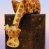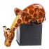 Деревянная статуэтка жирафа, смотрящего вниз, украшенная росписью. Она чудесно расположится на полке или на краешке стола.