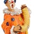 Изумительная настольная статуэтка клоуна, играющего на гармошке. Клоун одет в яркий оранжевый наряд, рядом с ним сидит маленькая белая собачка, в красном колпаке.