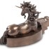 Изумительная настольная статуэтка мифического существа единорога, который символизирует целомудрие и духовную чистоту. Единорог изображен лежащим на подставке овальной формы.
