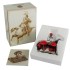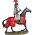 Декоративная настольная статуэтка средневекового рыцаря крестоносца с топором, верхом на коне. Рыцарь одет с закрытый шлем, с высоким ярко-красным хохолком, в длинную кольчугу, поверх которой белая накидка с изображением небольшого креста.