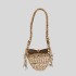 Сумка аборигена, выполненная мастерами вручную, украшена небольшими бежевыми бусинами, ракушками и камушками, имеет застежку. Ручка сплетена из веревки-шпагата. Сумка станет интересным элементом интерьера в этническом стиле, так же ее можно использовать в качестве кашпо для цветов или в качестве дамской сумочки.