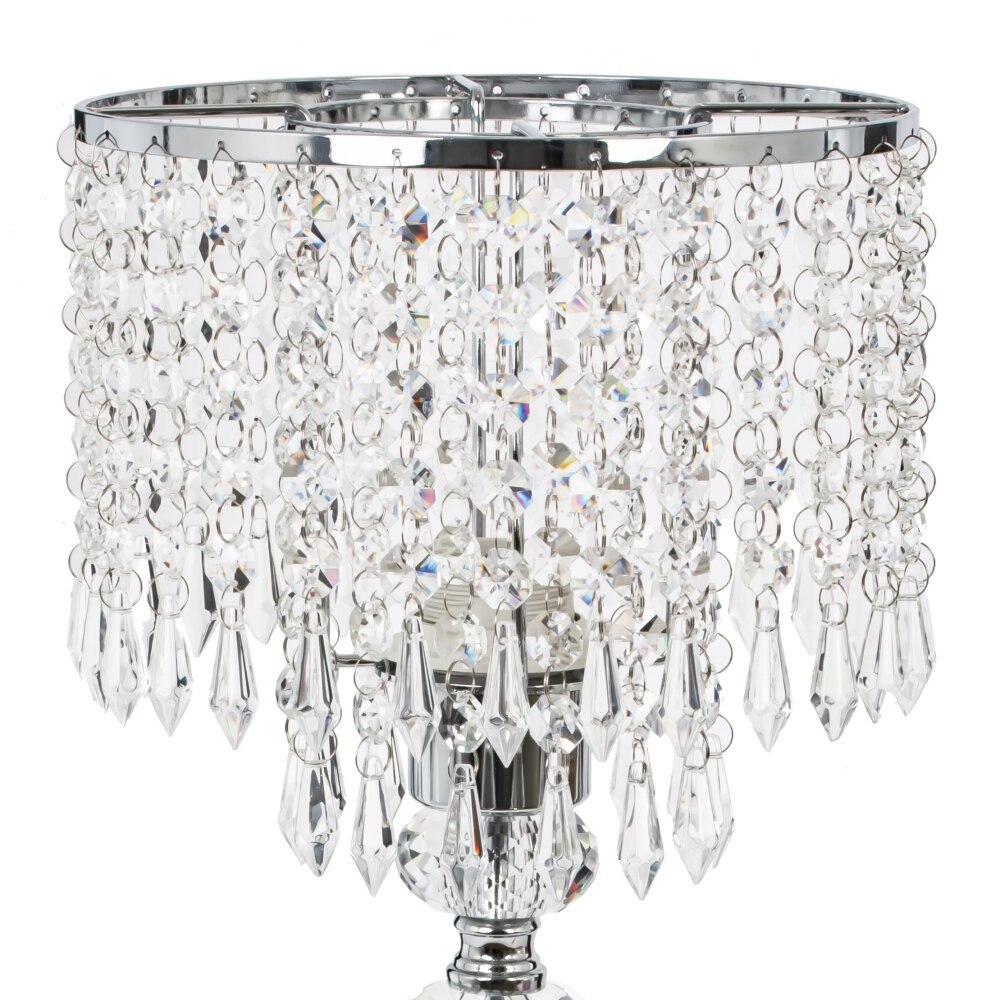 Элегантный светильник настоящим украшением интерьера. Основание выполнено из качественного металла с серебристым покрытием, что придаёт изделию роскошный вид. Абажур с цоколем E27 состоит из металлического каркаса, украшенного стеклянными вставками, которые красиво преломляют свет, создавая в комнате уютную атмосферу. Длина шнура составляет 0,94 м, что позволяет удобно разместить светильник на столе, тумбе или комоде. Этот декоративный осветительный прибор прекрасно подойдет для классического и современного стиля, добавляя помещении нотки изысканности и утонченности.
