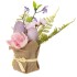 Эта изысканная пасхальная цветочная композиция выполнена из полимерных и текстильных материалов, гармонично соединяя искусственные цветы, декоративные яйца и зелень. Нежные розовые пионы и миниатюрные сиреневые цветки из текстиля создают атмосферу весенней свежести. Листья папоротника и другие декоративные элементы придают композиции естественный и праздничный вид. Центральными элементами стали искусственные яйца с эффектом крапинок, которые символизируют Пасху. Основа украшения представляет собой кашпо из мешковины, перевязанный декоративной лентой, что придаёт ему уютный стиль. Такая композиция станет прекрасным украшением для дома или оригинальным подарком на Пасху.