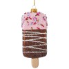 Это яркое и аппетитное стеклянное украшение в форме эскимо с шоколадной и розовой глазурью, украшенное яркой разноцветной посыпкой, станет оригинальным и веселым акцентом на вашей новогодней ёлке. Фигура выполнена из стекла и расписана с особым вниманием к деталям: гладкая шоколадная часть сочетается с нежной розовой глазурью, украшенной множеством маленьких ярких точек — посыпки, которая придаёт изделию праздничный и радостный вид. Благодаря блестящей поверхности и ярким цветам украшение привлекает внимание и создаёт атмосферу веселья и сладких мечтаний. Такое украшение отлично впишется в любой праздничный декор, особенно в современные и тематические композиции, добавляя нотку игривости и оригинальности. Эскимо из стекла — это не просто украшение, а символ радости и сладких моментов, который будет радовать глаз и создавать настроение праздника долгие годы.