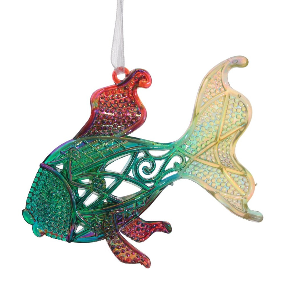 Новогоднее украшение "Рыба" — это элегантное изделие, выполненное из цветного полиакрила. Ее красивые плавники и хвост придают украшению грацию и легкость, создавая ощущение плавного движения. Представлена в двух вариантах: с золотым хвостом и с зеленым хвостом. Эта замечательная рыбка станет прекрасным акцентом на вашей новогодней ёлке и добавит волшебства в атмосферу праздника. Это украшение не только радует глаз, но и символизирует новизну и движение в наступающем году.