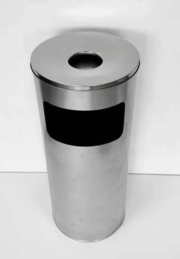 Урна с пепельницей изготовлена из оцинкованной стали, что позволяет использовать её как внутри помещений, так и на улице. Урна снабжена верхней крышкой из нержавеющей стали, а также алюминиевым горшком для предотвращения попадания горящих окурков и пепла внутрь урны. Боковое окно урны позволяет бросать более крупный мусор.