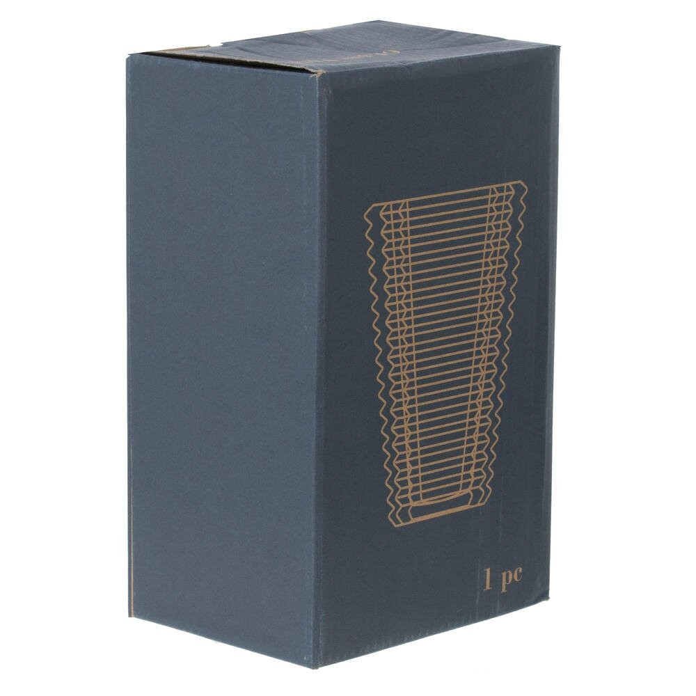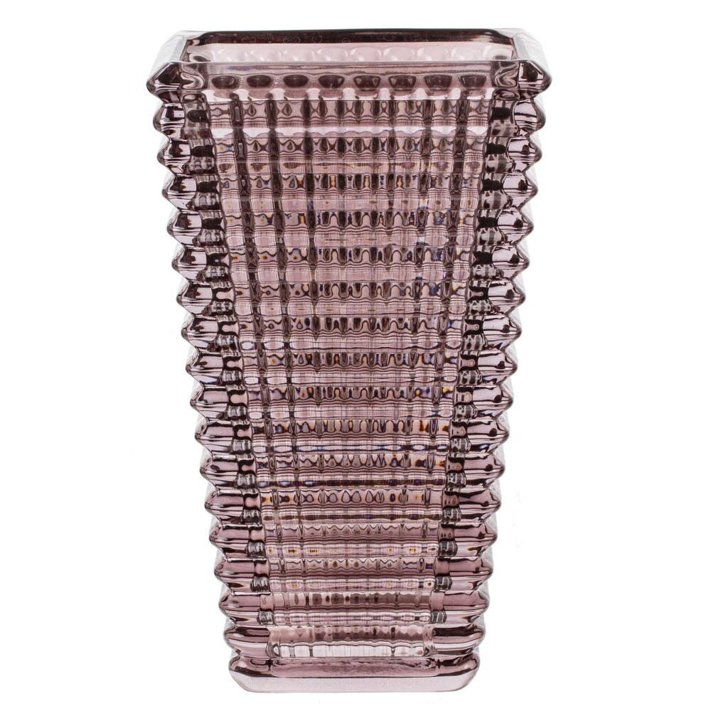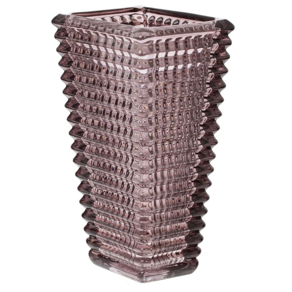 Стеклянная ваза объёмом 1050 мл выполнена из прозрачного окрашенного стекла с благородным дымчато?лиловым оттенком. Корпус имеет трапециевидную прямоугольную форму, плавно расширяющуюся кверху, а рельефные ребра и перекрестный фактурный узор создают выразительную игру света и бликов. Толстые стенки и широкое устойчивое дно придают изделию надежность, а удобное горлышко подходит для средних букетов, сухоцветов и декоративных веток. Модель гармонично впишется в современный интерьер — от минимализма до арт-деко — и может служить самостоятельным акцентом на столе, тумбе или подоконнике. Рекомендуется бережное ручное мытьё без абразивов. Отличная идея для подарка и стильного декора дома или офиса. Размер горловины: 11*8 см.