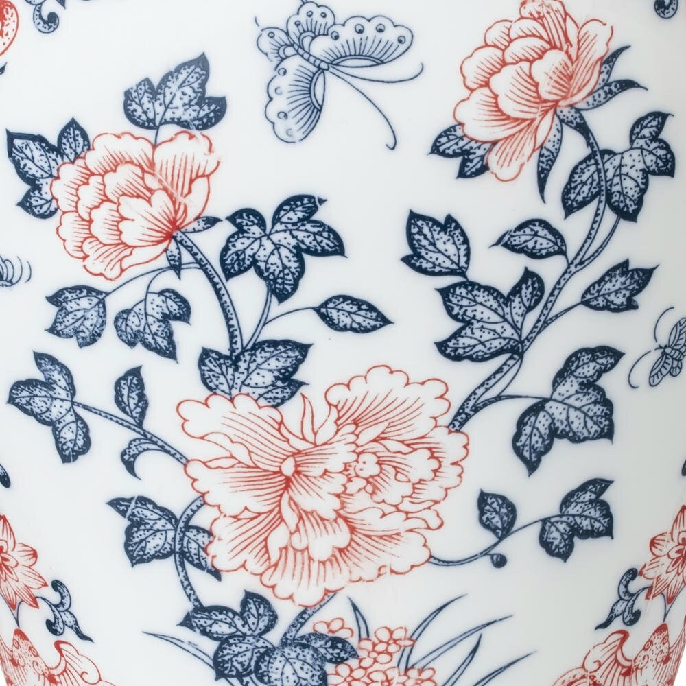 Элегантная ваза из высококачественного фарфора объёмом 5200 мл станет ярким акцентом в любом интерьере. Классическая вытянутая форма подчёркивает изящество изделия, а гладкая белоснежная поверхность украшена тонким орнаментом в традиционном восточном стиле. Нежные цветы и листья в синих и коралловых оттенках создают утончённую композицию, которая гармонично сочетается как с живыми, так и с декоративными букетами. Ваза идеально подойдёт для гостиной, спальни или кабинета, добавит пространству аристократичный шарм и ощущение уюта. Прочное фарфоровое изделие легко очищается и надолго сохраняет первоначальный вид, оставаясь стильным интерьерным акцентом и достойным подарком для ценителей классики. Диаметр горловины: 4.5 см.