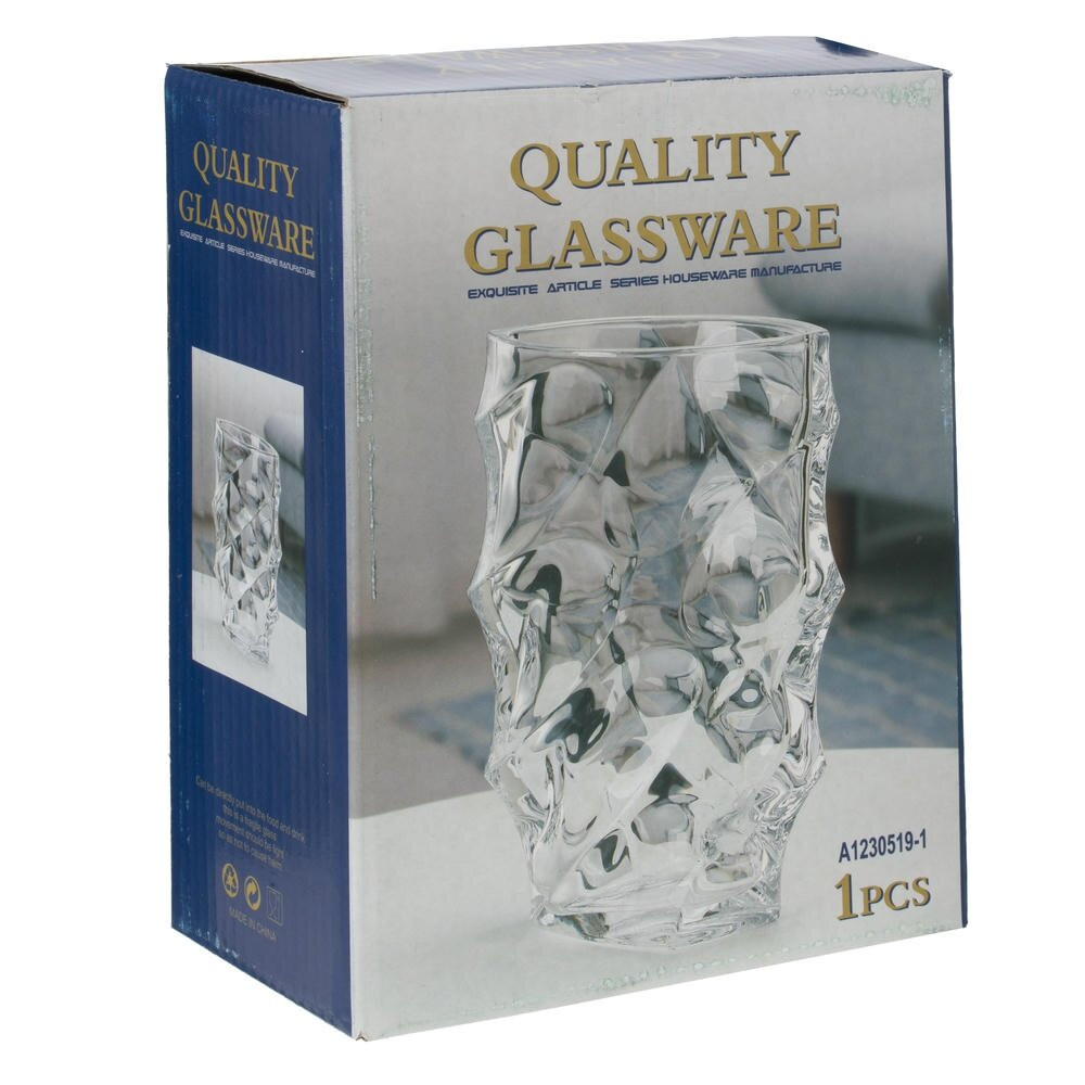 Элегантная стеклянная ваза объемом 550 мл. Изготовлена из прозрачного, толстостенного стекла с выразительным скульптурным рельефом, напоминающим застывшие волны. Цилиндрическая форма с чередованием вогнутых и выступающих граней эффектно преломляет свет, создавая игру бликов. Утолщенное дно придает устойчивость, гладкий круглый край аккуратно обработан. Компактный объем удобен для небольших букетов, одиночных цветков, сухоцветов или декоративных композиций с камешками. Нейтральный прозрачный оттенок легко вписывается в современный, минималистичный или скандинавский интерьер, а также может служить стильной подставкой для кистей и карандашей на рабочем столе. Размер горловины: 10.5*6.5 см.